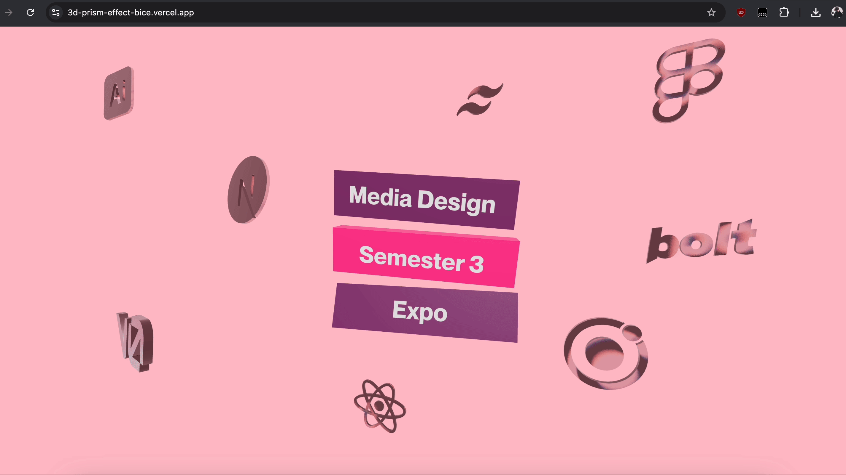 To match the NABA- and Fontys-style a bit more, I went for the Box component of react-three/drei and added the Float in here as well to match the other models.